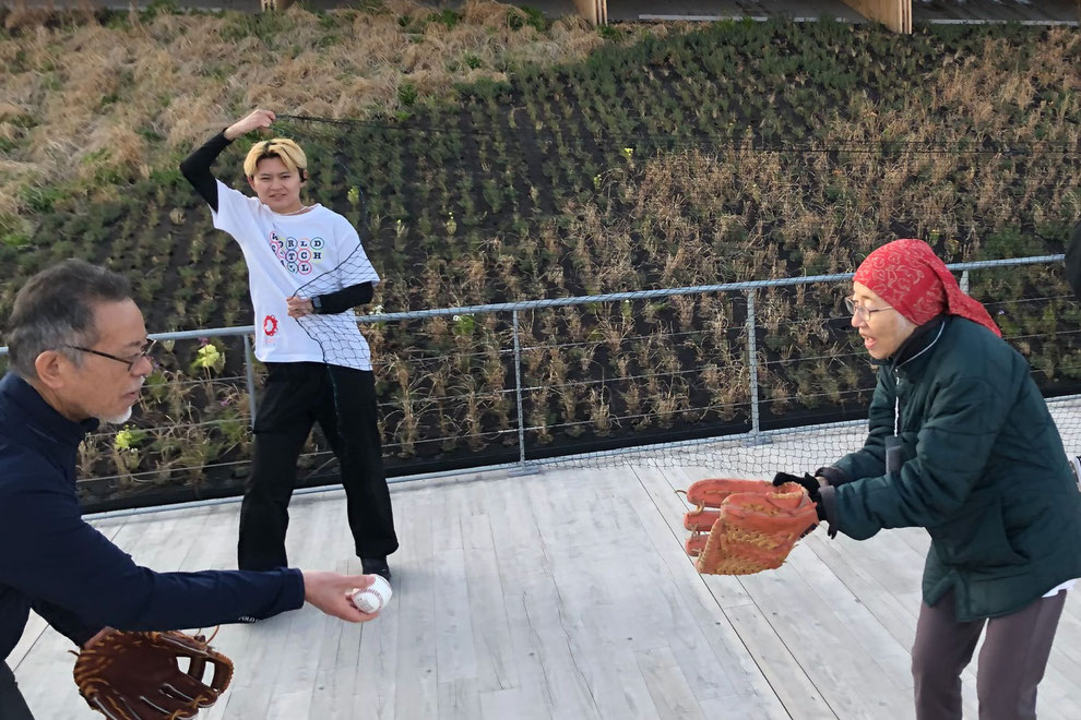 2018年大阪桐蔭高校で春夏連覇を達成し、日本ハムファイターズに入団した柿木蓮さんは、2024年をもって現役を引退。今回のイベントに参加し、「僕が初めてキャッチボールをした時の喜びや投げていた時の気持ち良さ、そういう感覚が初めてキャッチボールする人でも得られます」と話し、ボールを投げた小学生とはグータッチで成功を喜んだ。
