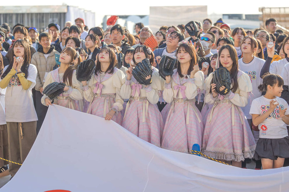 キャッチボールに伴走して、大阪府立淀川工科高等学校吹奏楽部が『ヤングマン』や『幸せなら手をたたこう』で盛り上げた。高嶺のなでしこのメンバーが並ぶゾーンでは、ヒット曲『可愛くてごめん』を演奏。キャッチボールは一時中断、メンバーが楽曲の振り付けを踊り、大屋根リングは瞬間的にアリーナ会場に。