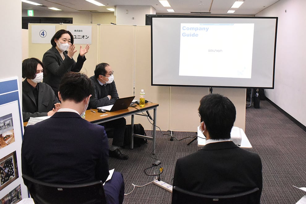 学生は、そんな企業の話を聞き、質問を交えながら、自分に合った企業を探す。昨年のアスカチ2023に参加し、株式会社石川ツエーゲンに内定した眞道ろこさんは、「学生の人数が少ないので社員とのコミュニケーションが多く取れることや全会社の話が聞けること」をこのイベントのポイントとして挙げた。