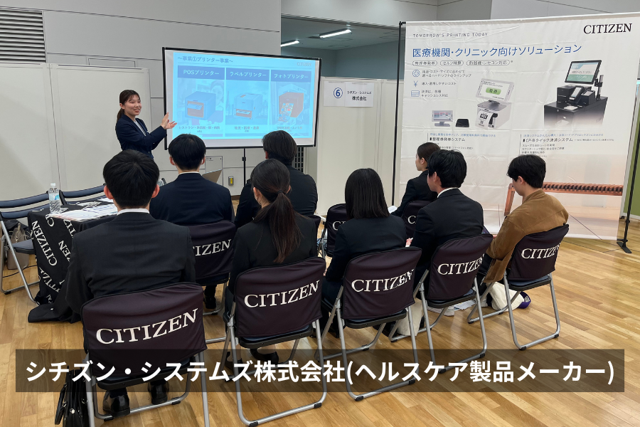 説明会終了後に立食形式の懇親会の時間を設けています。ブースに座れた企業、座れなかった企業ともに、人事担当者と気軽に話すことができ、社風などよりリアルに感じとることができると同時に、自身のアピールの場にもなります。
